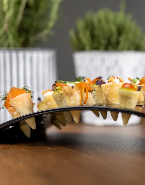 Neben Flying Dinner bieten wir Flying Fingerfood, Flying Dessert und Flying Lunch, jeweils mit kreativen Variationen, saisonalen und regionalen Zutaten.